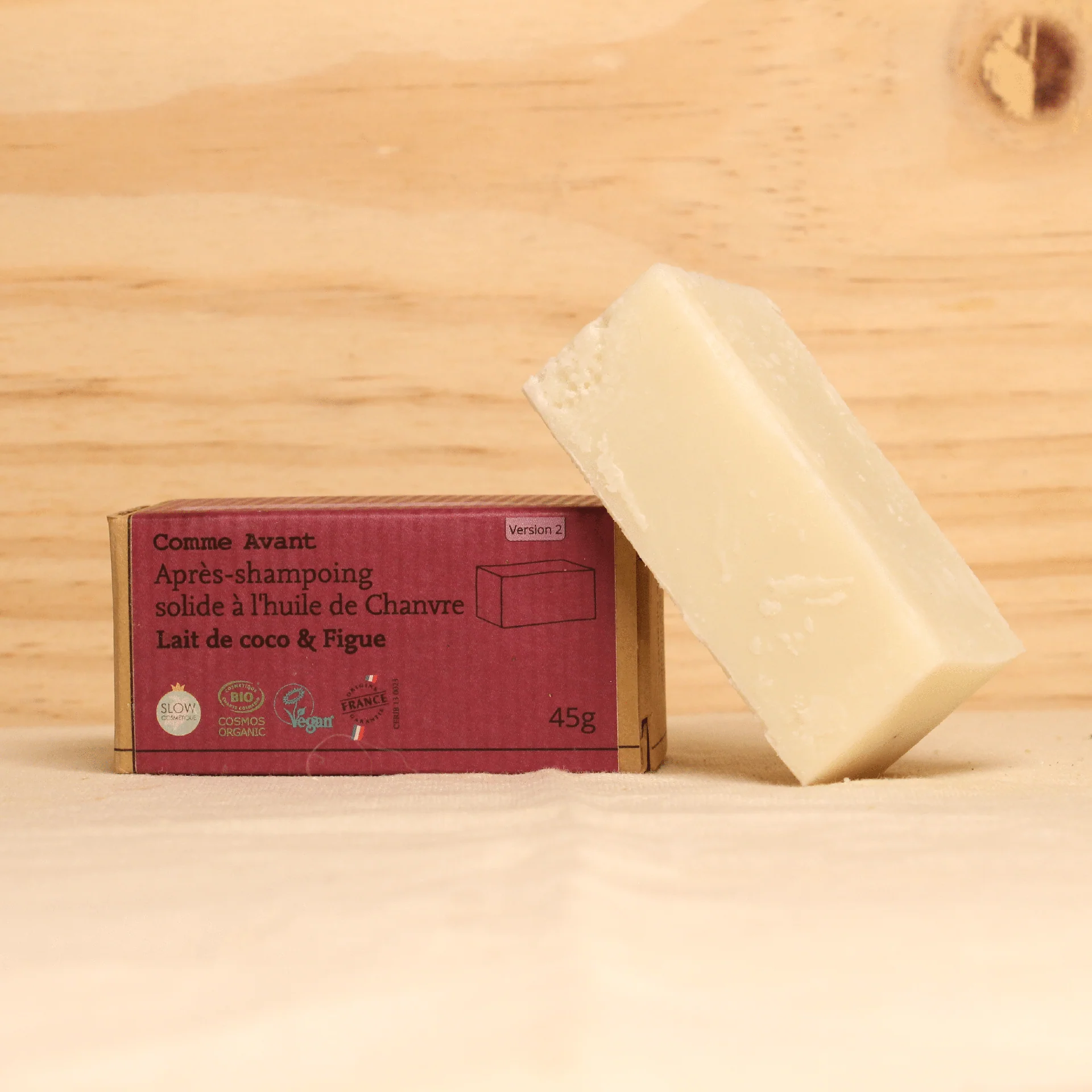 Après-shampoing solide à l’huile de chanvre – Lait de coco & Figue – 45g