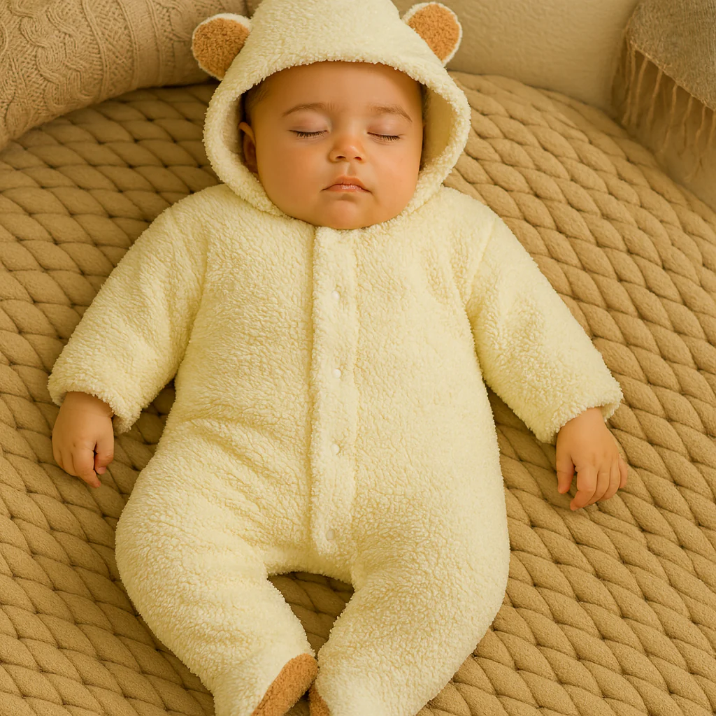 La Combinaison Bébé Hiver Ours Polaire garde votre tout-petit bien au chaud pendant les journées fraîches comme lors des moments de repos à la maison.