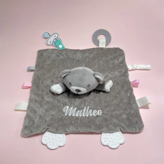 Fabriqué en tissu premium soigneusement sélectionné, ce doudou offre une sensation soyeuse qui ne s’altère pas avec le temps. Sa conception ingénieuse intègre un anneau de dentition amovible pour soulager les gencives sensibles lors des poussées dentaires. Chaque détail a été pensé pour répondre aux besoins spécifiques des tout-petits et de leurs parents.