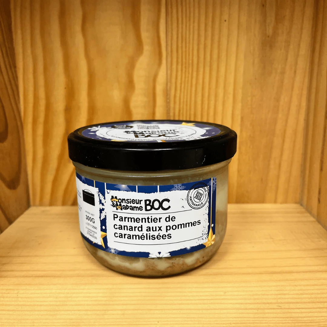 La Centrale du Bocal est une société qui propose des plats préparés en bocaux réalisés artisanalement en Vendée. Fort de leur expérience de restaurateur depuis 2016, cela leur permet de proposer des plats élaborés et adaptés aux différentes saisons. Gamme M et Mme BOC (pasteurisée) : Parmentier de canard aux pommes caramélisées – 300g