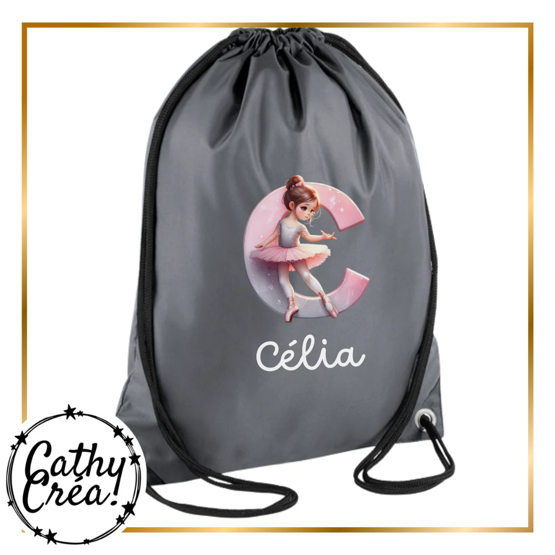 Sac de gym personnalisé enfant avec prénom – Danseuse/Ballerine (école, sport, piscine)
